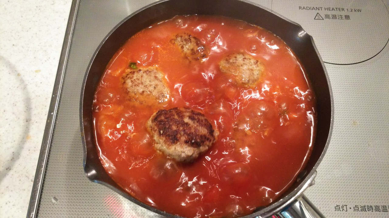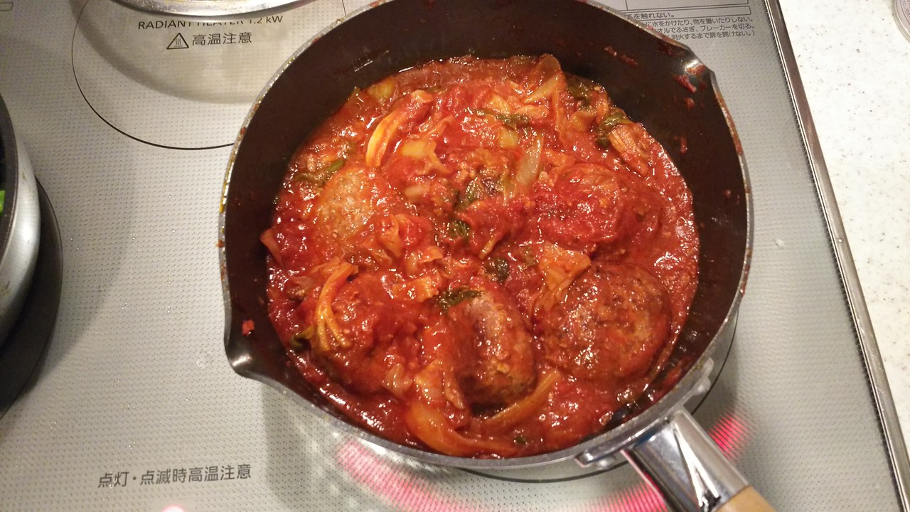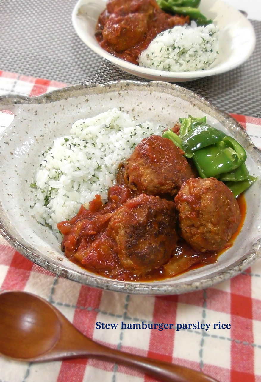 トマトベースでしっかり煮込んだハンバーグはコクがありとても美味しかったですね