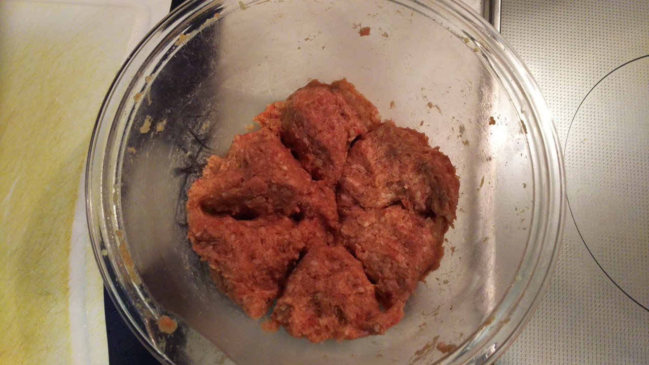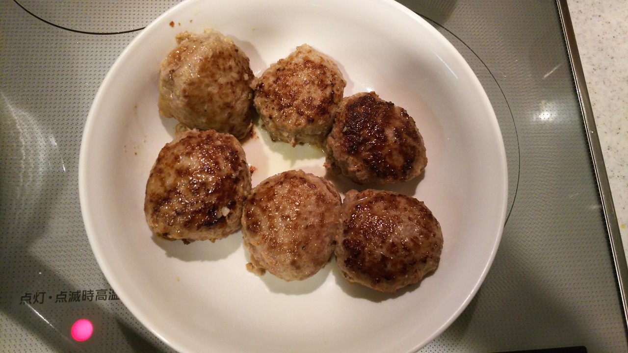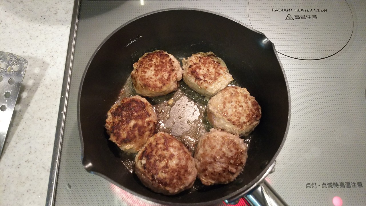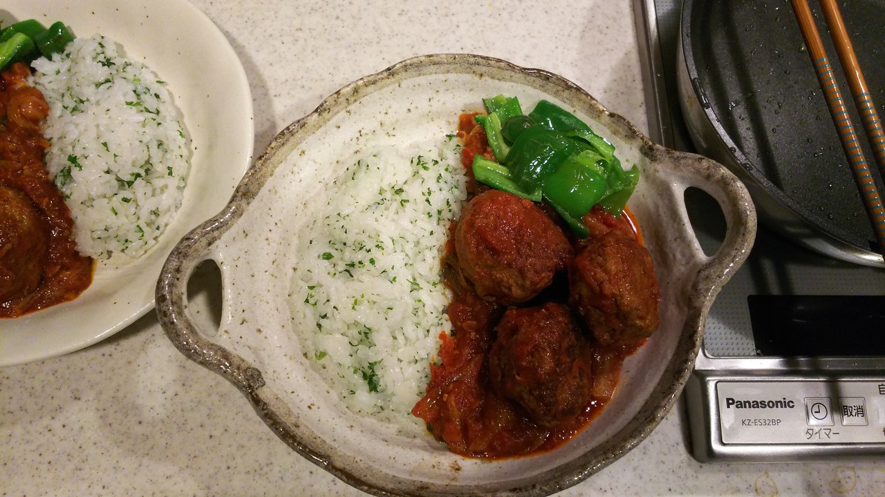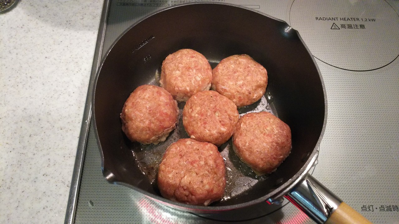 今日は小さいハンバーグを作ってご飯にかけてみました