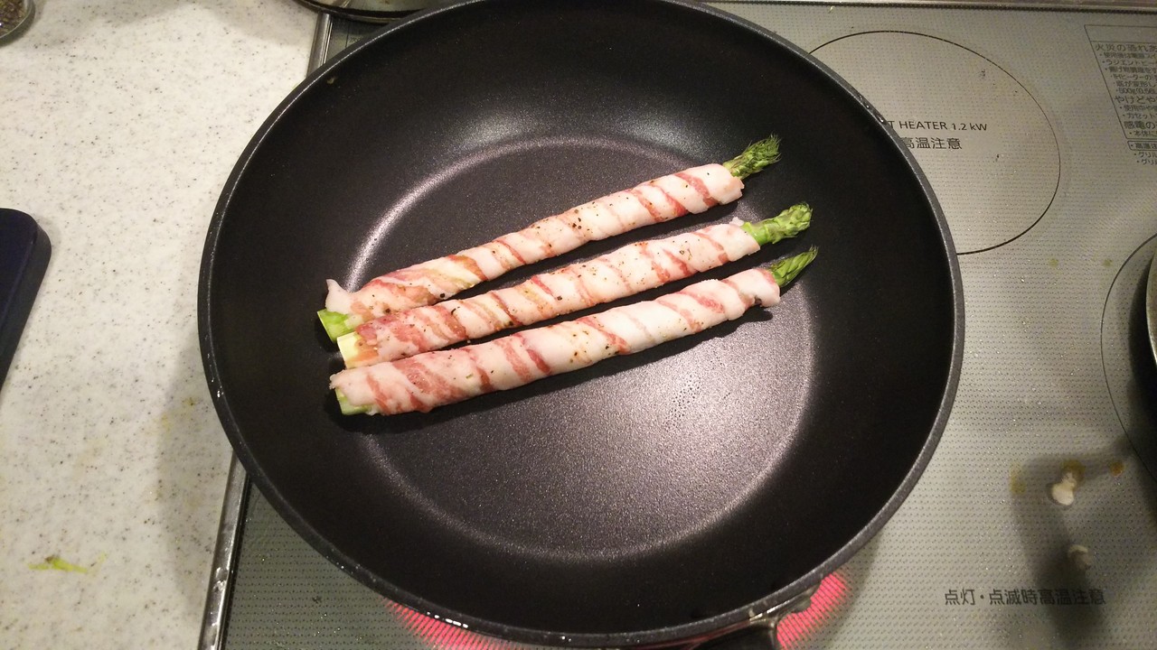 豚バラ肉のスライスを巻いてカリっと焼いてみました