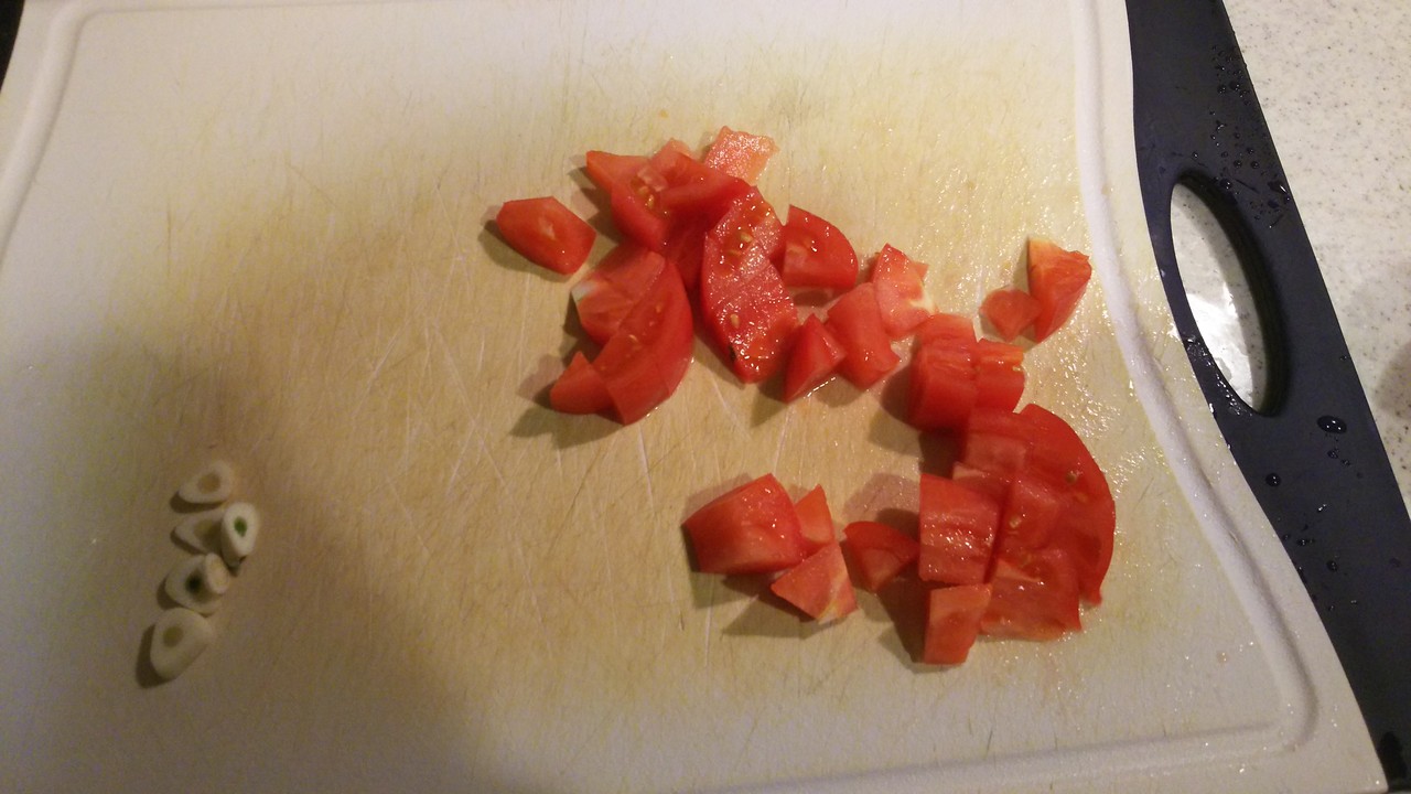 カリっとした表面にフレッシュなトマトソースが絡みます