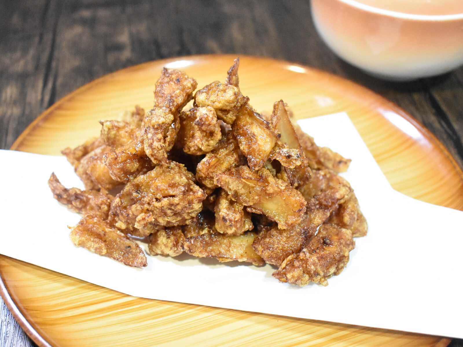 しっかりと揚げてサクサクとコリコリの食感を楽しみます!