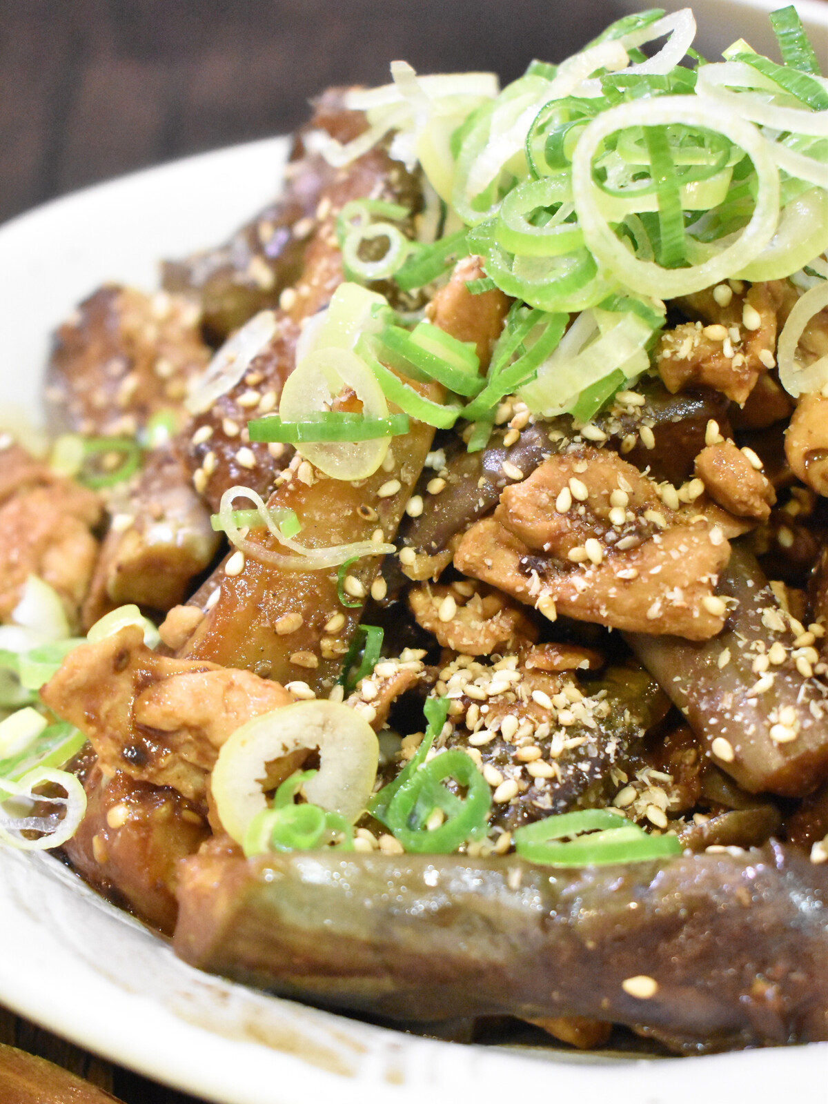 4.豚肉に火が通ったら揚げた茄子、【A】をまぜたものを入れます