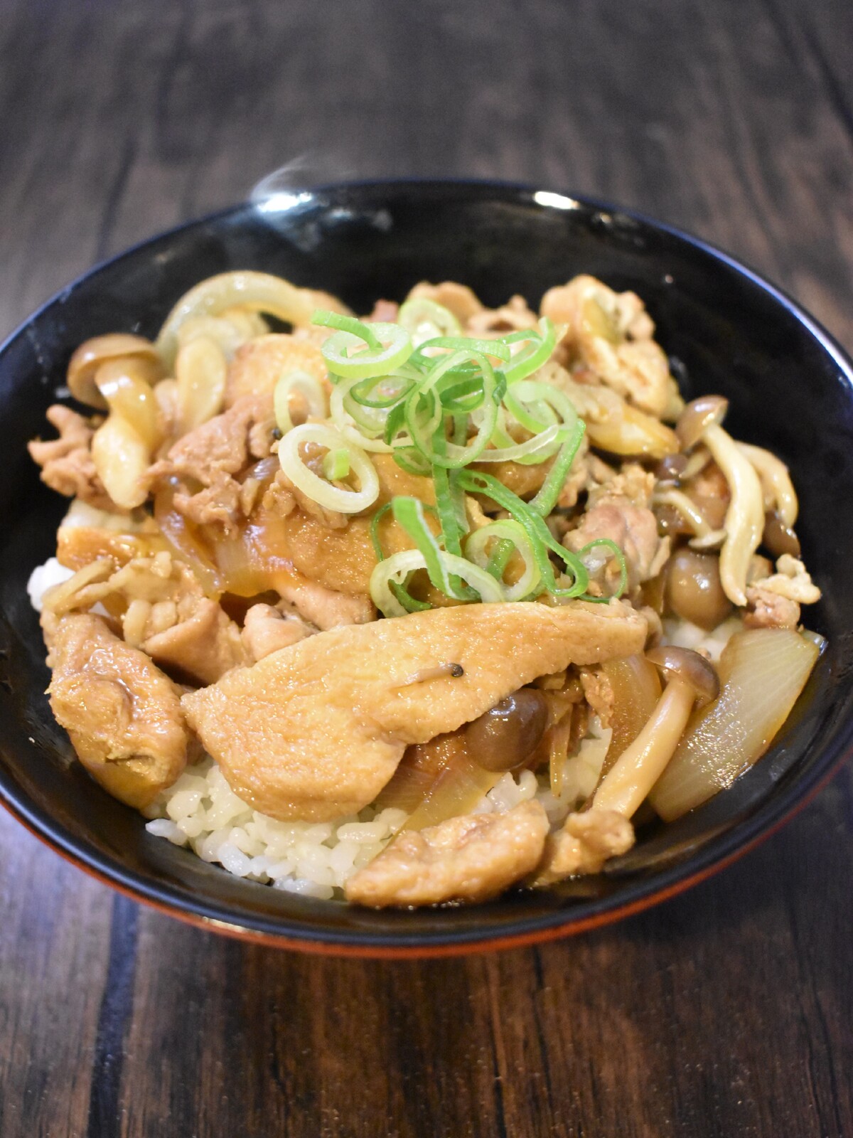 普通の豚丼でもいいんですが油揚げを入れることでちょっと一工夫ですね。