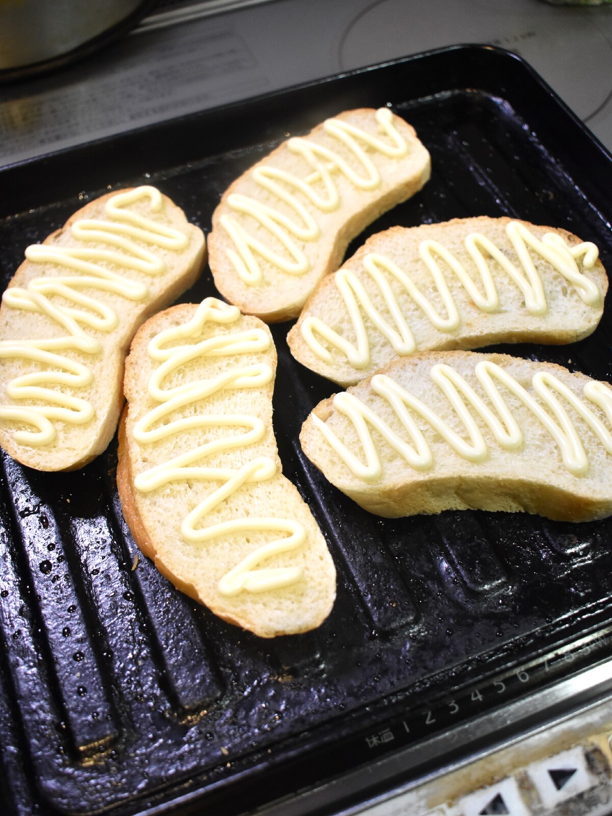 1.パンにマヨネーズをかけます
