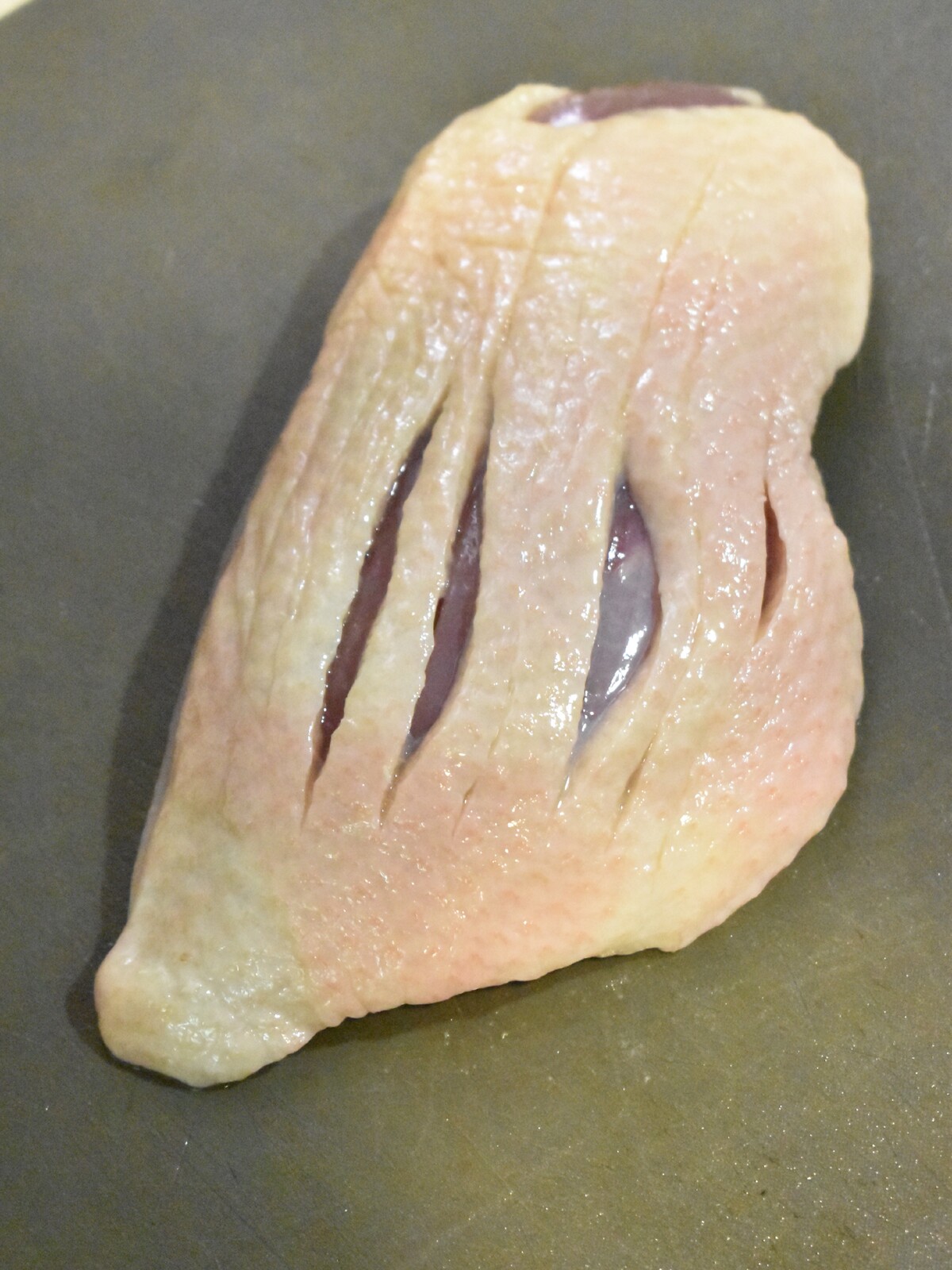 1.鴨ロースは皮の部分に縦に切り目を入れて塩をしておきます