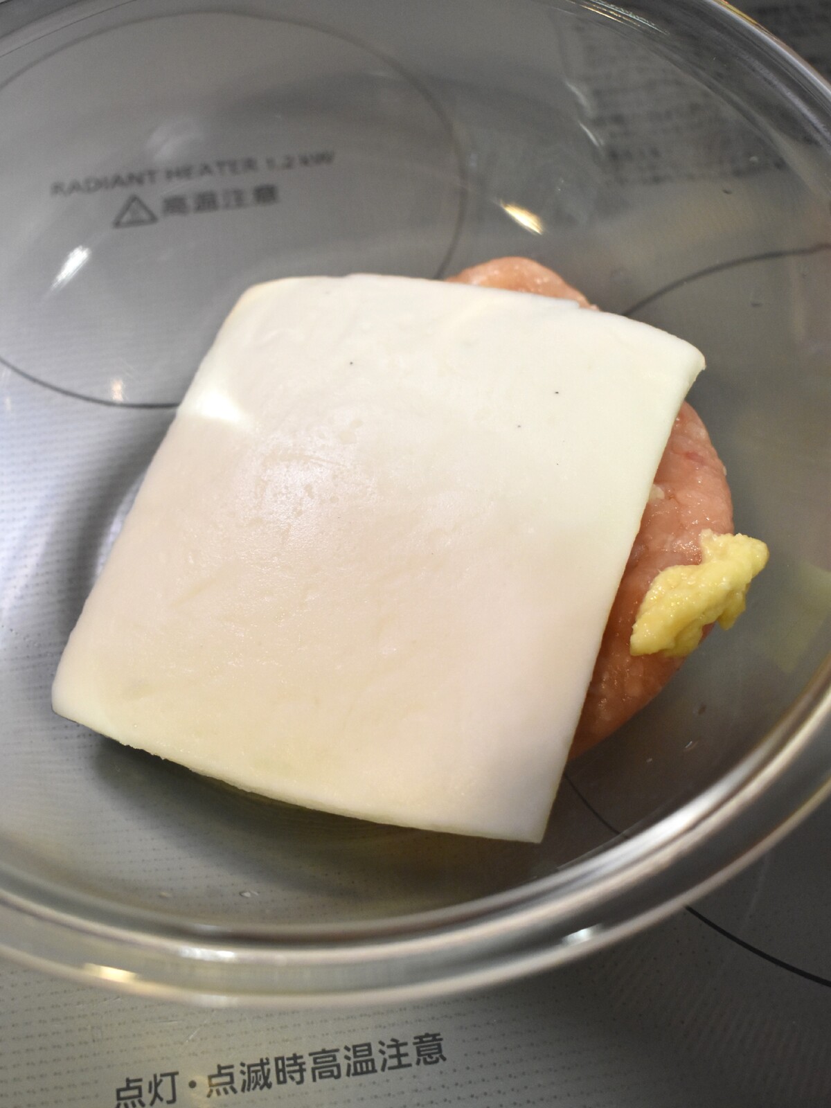 1.ボウルに鶏ひき肉、はんぺん、おろし生姜を入れます