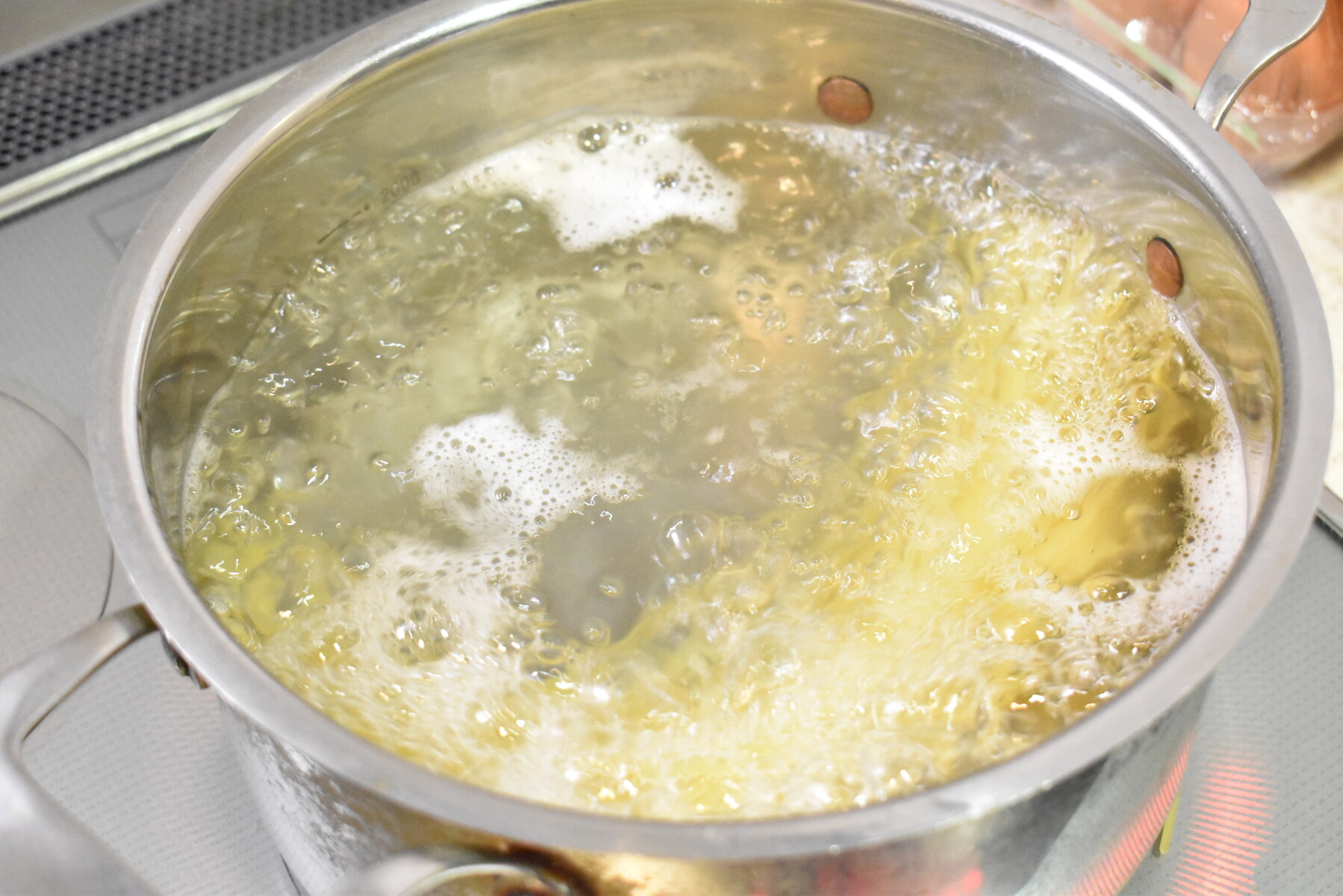 1.鍋でスパゲティで茹でます