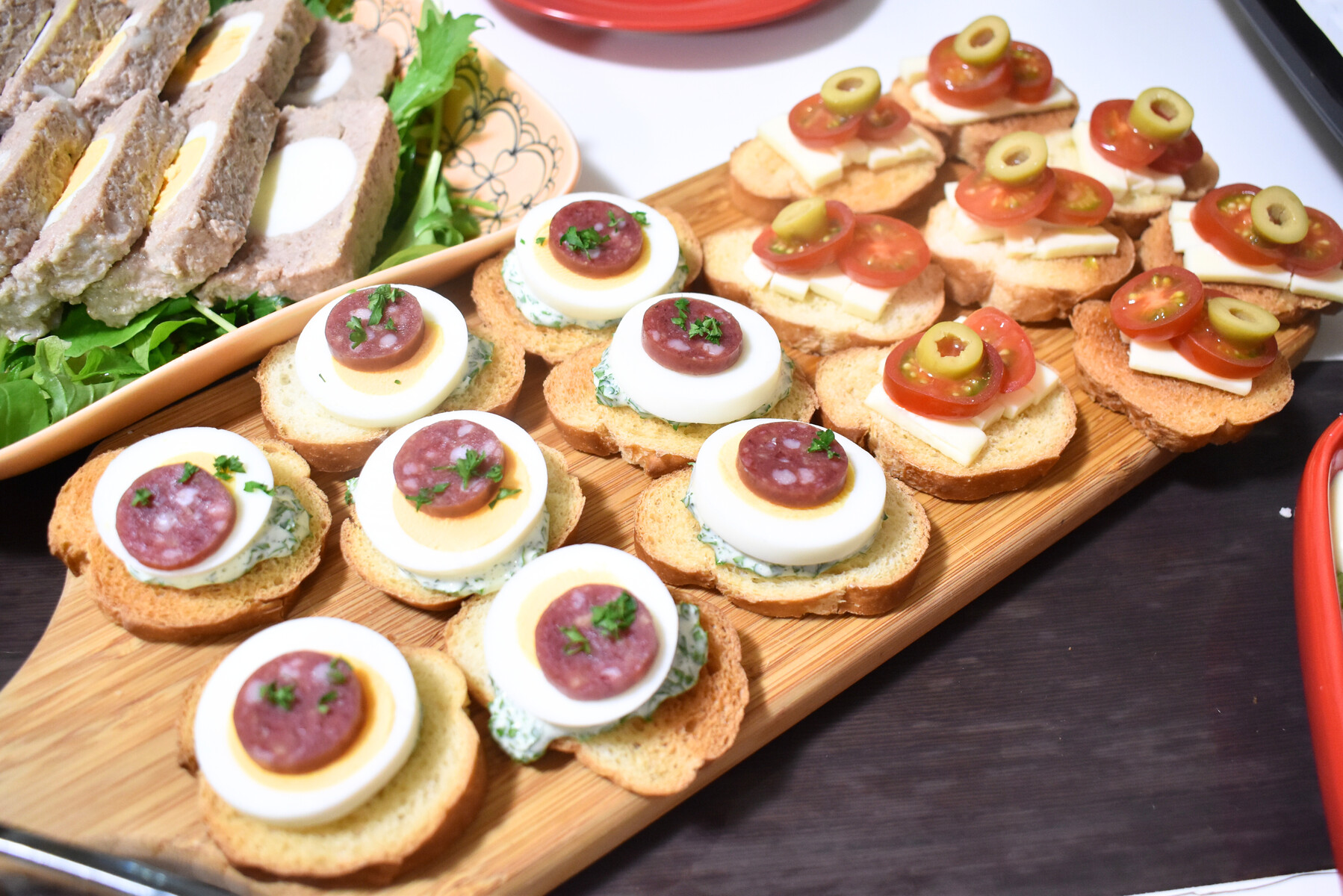 手前のは パセリを混ぜたマヨネーズ、茹で卵、カルパスをのせてます