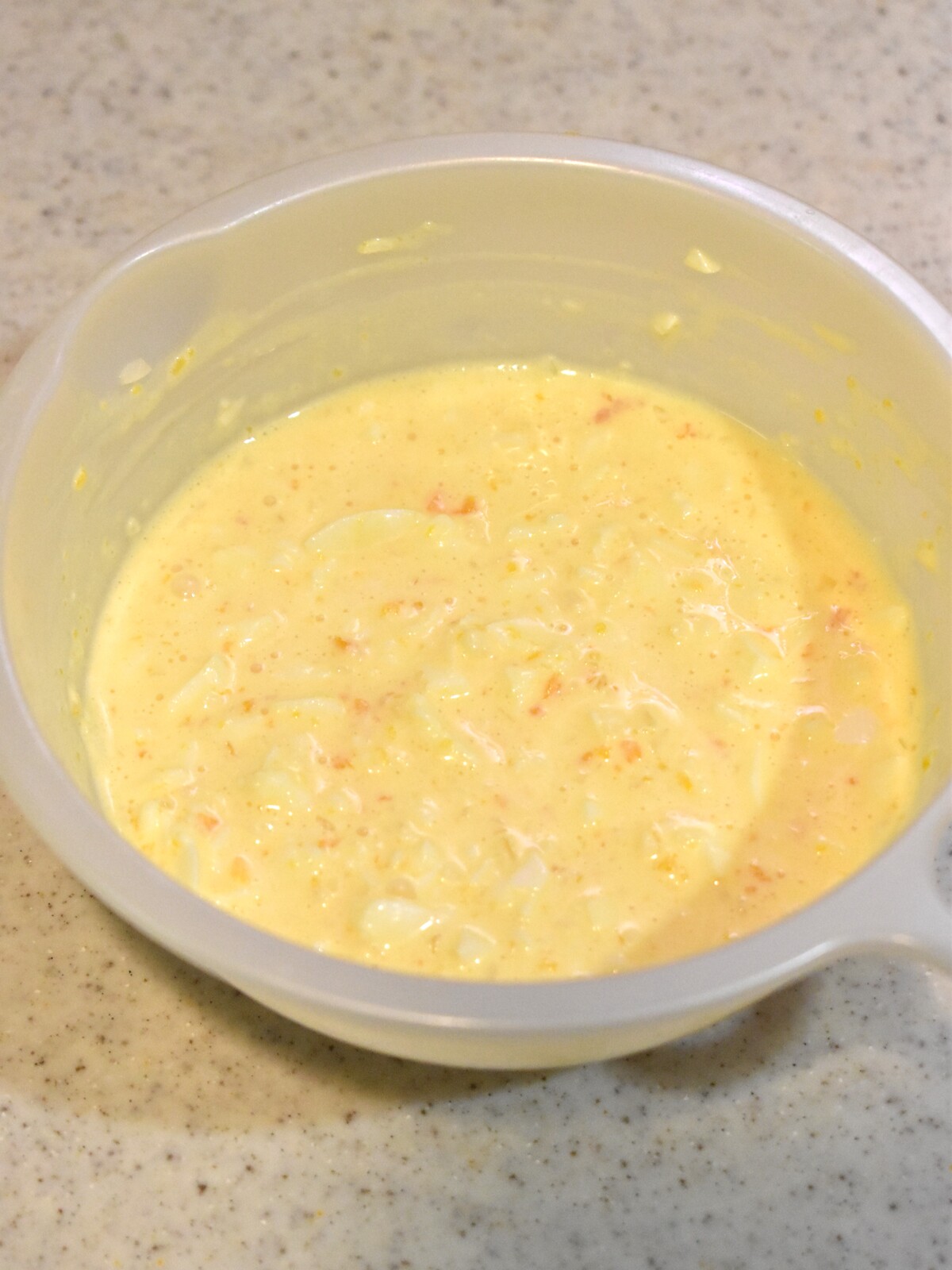 1.【A】をよく混ぜてタルタルソースを作っておきます(茹で卵と玉ねぎはみじん切り)