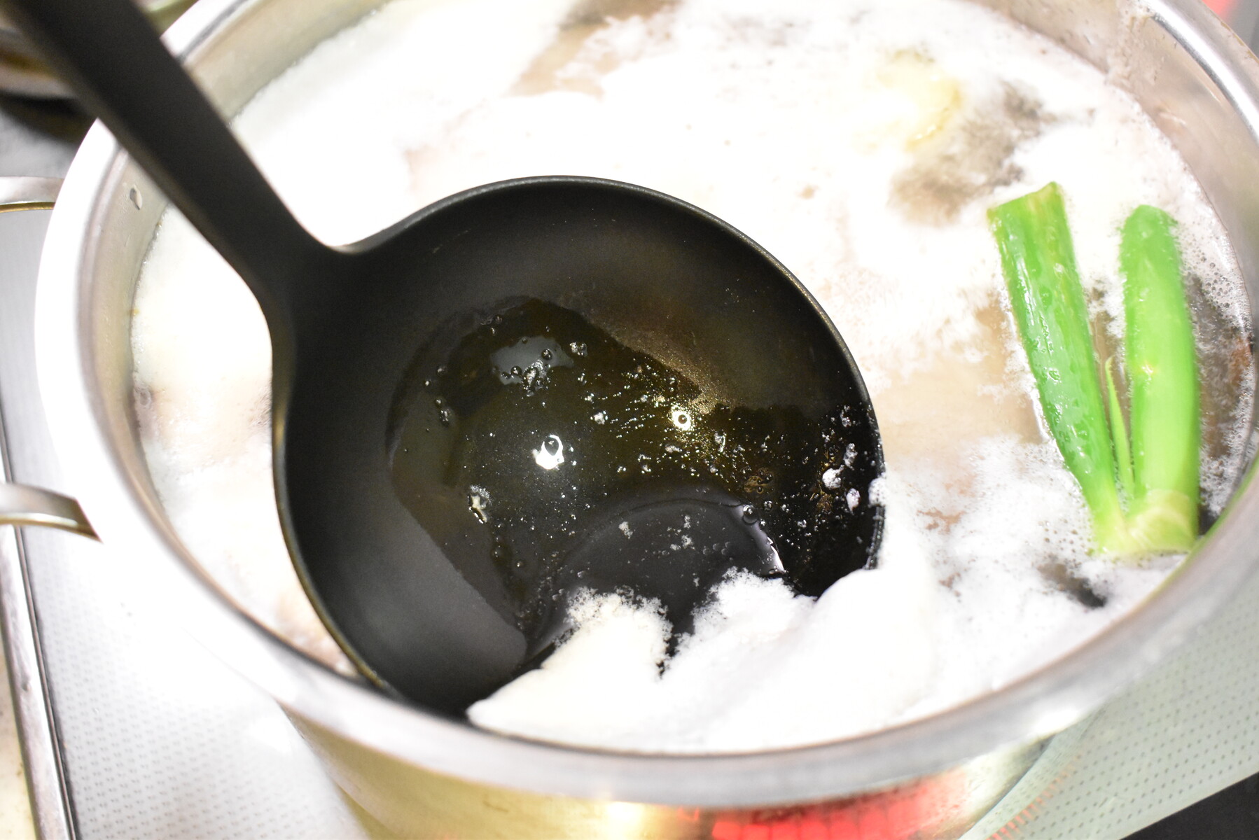 下茹での煮汁をそのまま使うので灰汁はしっかり取ります!