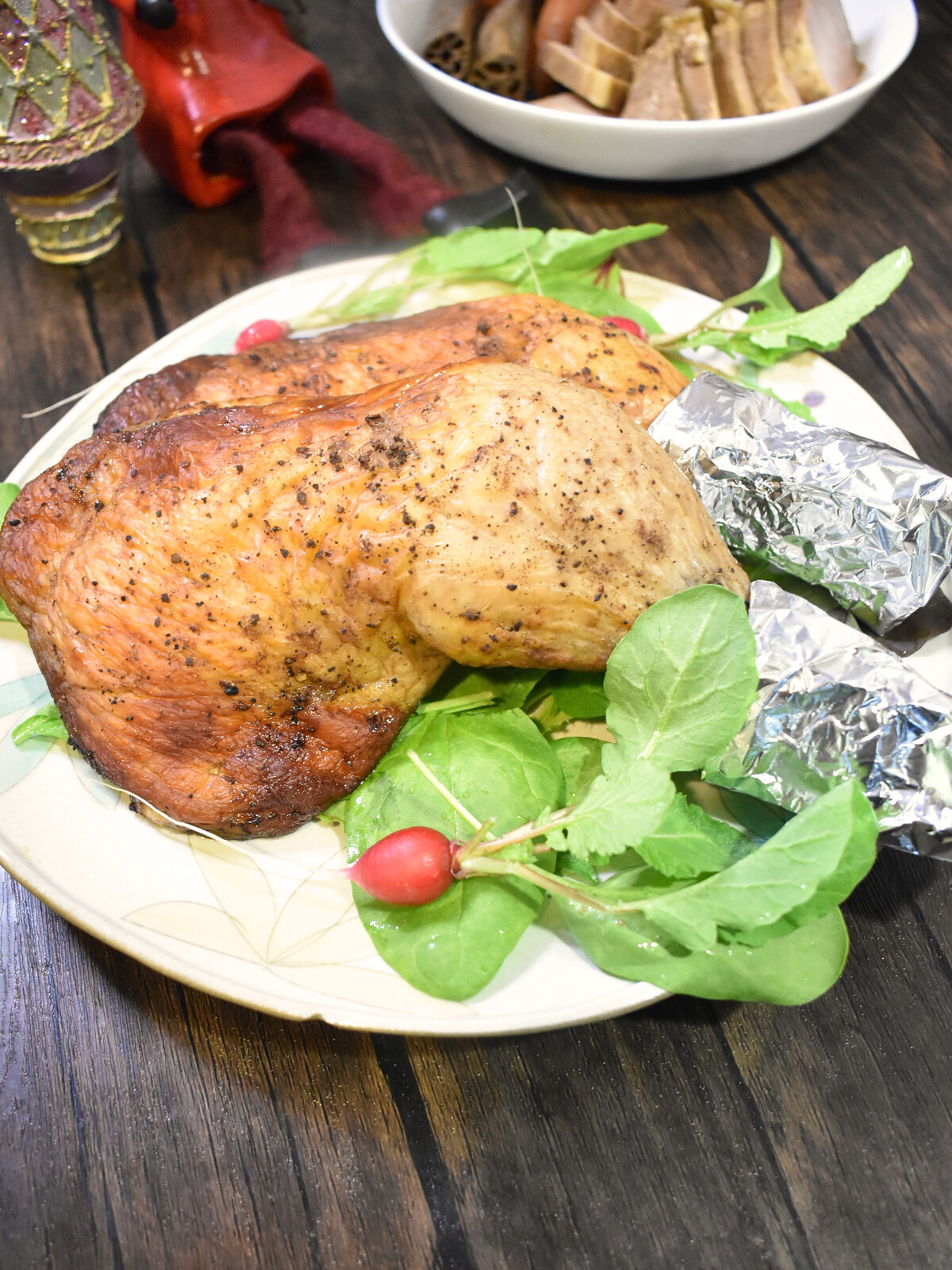 オーブンは最後に温度を上げることで皮がパリっと仕上がります