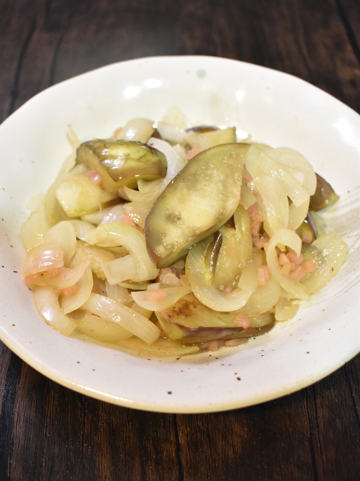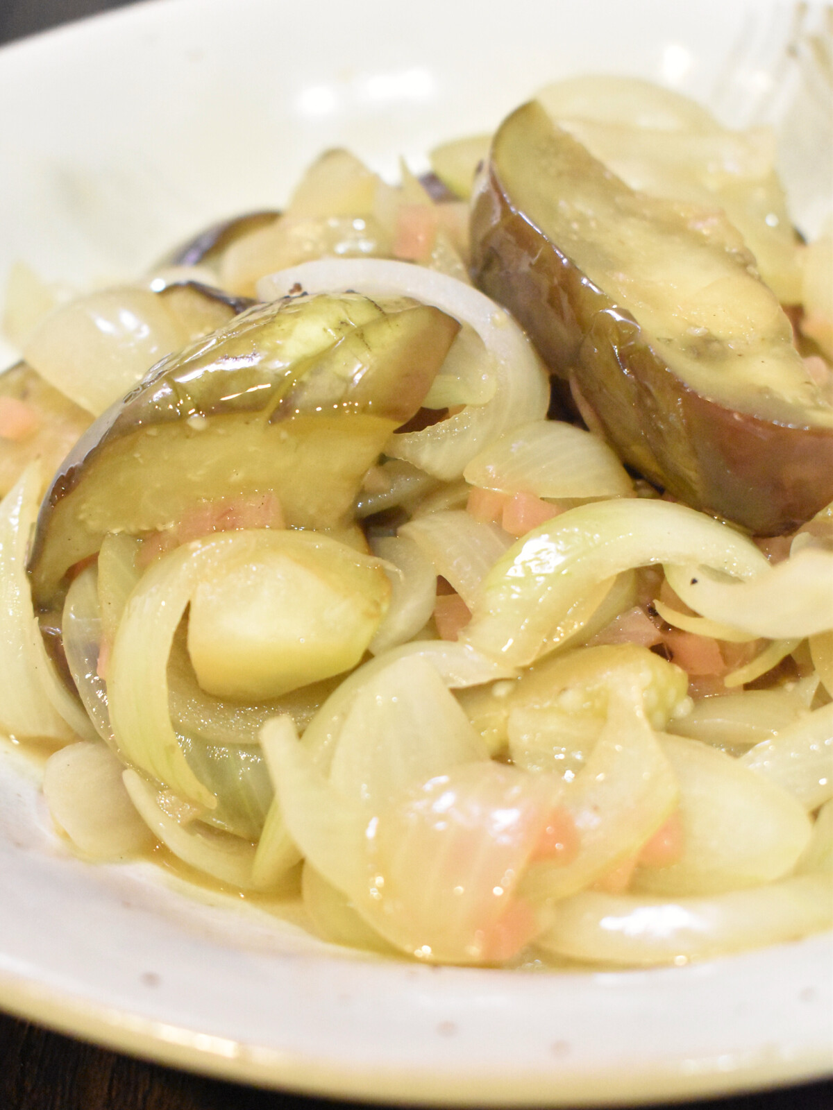 子供たちは茄子は苦手なので紅しょうがの香り玉ねぎを美味しそうに食べました(笑)